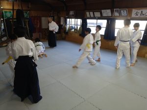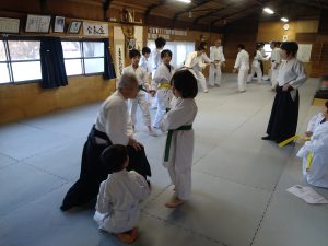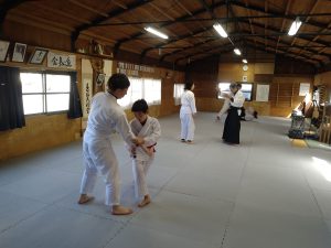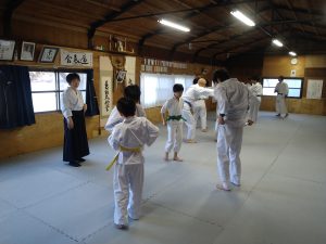 本日(2月15日)の第1部(少年部・初心者)の稽古では、体操・転換法・片手取り四方投げ・横面打ち一教・片手取り呼吸投げ・突き小手返し・座技呼吸法の各技について稽古を行いました。