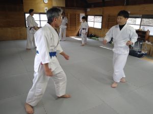 本日(3月22日)の第1部の稽古では、体操・転換法・半身半立ち片手取り回転投げ・突き三教・肩取り面打ち呼吸投げ・半身半立ち片手取り小手返し・座技呼吸法の各技について稽古を行いました。