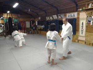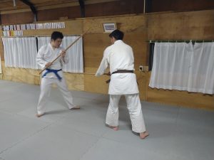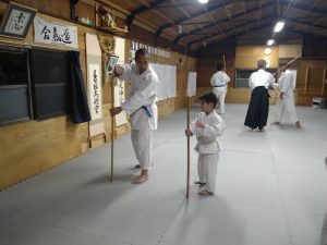 本日(4月9日)の稽古では、体操・31の杖(素振り・合わせ)・片手取り背伸運動・演武会稽古(両手取り天地投げ・片手取り小手返し・肩取り二教)・座技呼吸法の各技について稽古を行いました。