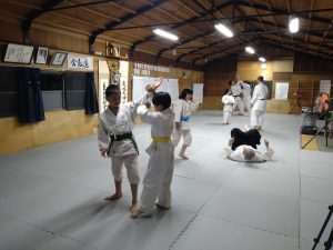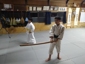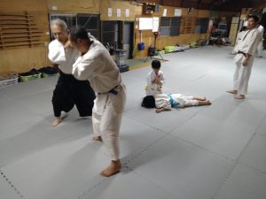 本日(4月21日)の稽古では、体操・西尾流刀法居合 六本目 柄押さえ・立ち技呼吸法・逆半身片手取り二教・横面打ち入身投げ・片手取り回転投げ・座技呼吸法の各技について稽古を行いました。