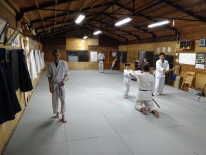 本日(9月4日)の稽古では、体操・31の杖(素振り・合わせ)・13の杖(素振り・合わせ)・片手取り四方投げ・正面打ち入身投げ・座技呼吸法の各技について稽古を行いました。