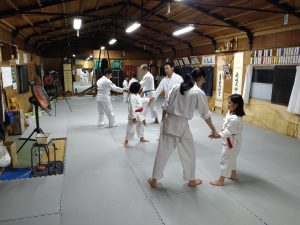 本日(9月14日)の第2部の稽古では、体操・転換法・横面打ち入身投げ2種・肩取り二教・後両手取り呼吸投げ・片手取り小手返し・座技呼吸法の各技について稽古を行いました。