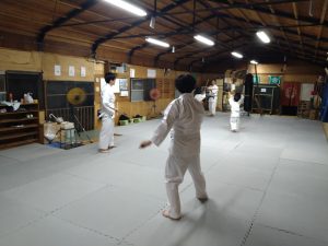 本日(6月29日)の第1部の稽古では、体操・転換法・片手取り前方に抜けての呼吸投げ・座技正面打ち一教・肩取り二教・肩取り面打ち半身で受けて前方回転・肩取り面打ち一教・座技呼吸法の各技について稽古を行いました。