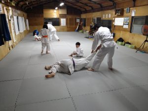 本日(6月12日)の稽古では、体操・31の杖(素振り・合わせ)・13の杖(素振り・合わせ)・両手取り天地投げ2種・肩取り一教(二教、三教)・座技呼吸法の各技について稽古を行いました。