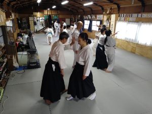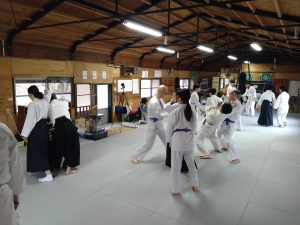 本日(1月18日)の第2部の稽古では、体操・転換法・正面打ち入身投げ・正面打ち一教・座技呼吸法の各技について稽古を行いました。