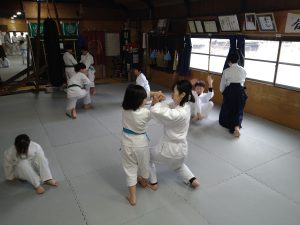 本日(1月25日)の第2部の稽古では、体操・転換法・片手取り回転投げ・肩取り一教・背伸運動・正面打ち小手返し・座技呼吸法の各技について稽古を行いました。