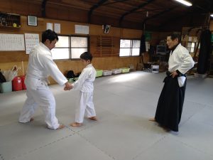 本日(1月25日)の第1部(少年部・初心者)の稽古では、体操・背伸運動・正面打ち小手返し・片手取り回転投げ三種・少年部六級審査技演武・正面打ち一教投げ・座技呼吸法の各技について稽古を行いました。