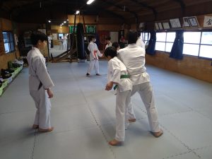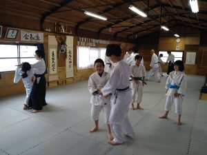 本日(2月1日)の第1部(少年部・初心者)の稽古では、体操・転換法・少年部10級審査技演武・諸手取り天秤投げ・両手取り天地投げ・肩取り二教・突き小手返し・座技呼吸法の各技について稽古を行いました。