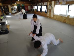 本日(1月15日)の稽古では、体操・31の杖(素振り・合わせ)・転換法・片手取り回転投げ・横面打ち一教・突き小手返し・座技呼吸法の各技について稽古を行いました。