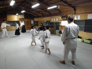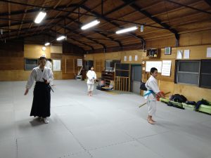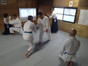 本日(12月25日)の稽古では、体操・31の杖(素振り・合わせ)・転換法・相半身片手取り入身投げ・相半身片手取り一教・相半身片手取り小手返し・座技呼吸法の各技について稽古を行いました。