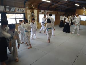 本日(12月28日)の少年部・初心者の稽古では、体操・転換法・横面打ち四方投げ・横面打ち一教(入身)・内回転呼吸投げ・突き小手返し・座技呼吸法の各技について稽古を行いました。