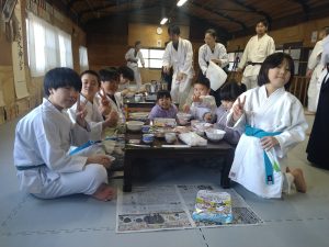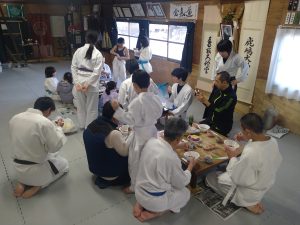 本日は稽古始めということで、稽古後に道場で鏡開き兼新年会を行いました。